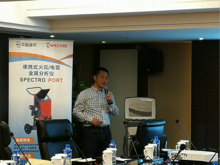 深圳華普通用科技有限公司攜手德國(guó)斯派克(SPECTRO)分析儀器公司于2018年02月01日在茂名國(guó)際大酒店聯(lián)合舉辦了“光譜儀應(yīng)用技術(shù)交流會(huì)”。本次共有9家單位30多人參加了此次交流會(huì)。德國(guó)斯派克市場(chǎng)總監(jiān)及產(chǎn)品經(jīng)理著重介紹了公司的全系列產(chǎn)品及其應(yīng)用,涵蓋了直讀光譜儀 SPECTROLAB、 SPECTROMAXx, 便攜式/移動(dòng)式光譜儀SPECTROTEST、SPECTROPORT,等離子體光譜儀SPECTRO ARCOS、SPECTROBLUE,X熒光光譜儀SPECTRO MIDEX、SPECTRO XEPOS以及手持式X熒光儀SPECTRO xSORT等。